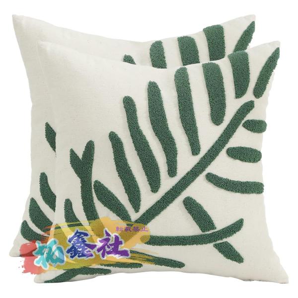 ■刺繍入りクッションカバー 45×45cm 2枚セット 葉 グリーン 北欧 シンプル おしゃれ モダン クッションカバー 正方形 枕カバー ソファ カ