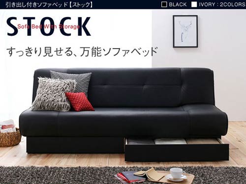■送料無料 日本製 シンプル ソファーベッド 引出付 合皮 黒 ソファベッド ソファ ベッド 3人掛け 収納付