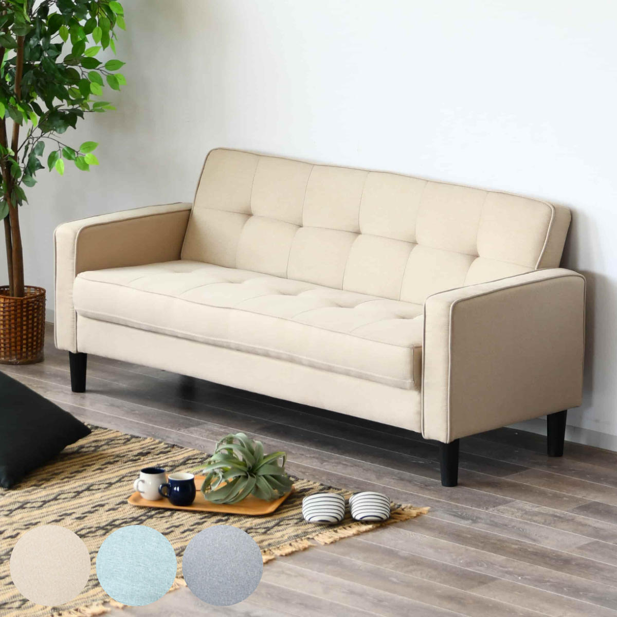 ■ソファ 3人掛け 幅170cm ホク ( 奥行71cm ソファー ファブリック シンプル 北欧風 ベージュ グリーン グレー おしゃれ ウレタン 長時間
