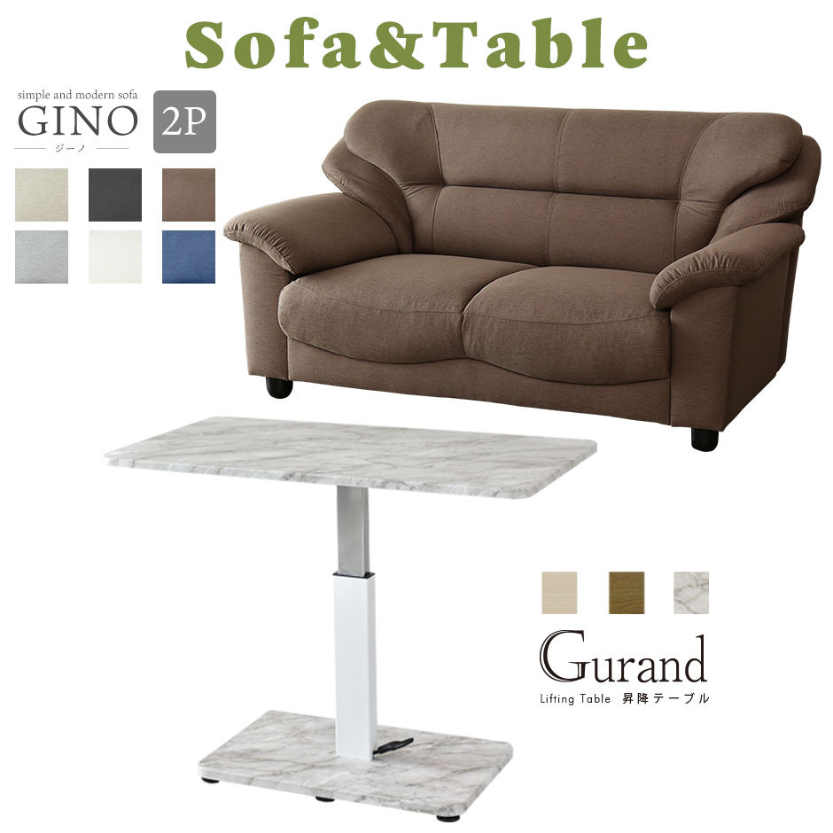 ■ソファ 2人掛け ローソファ リビングソファ I字 レザー モダン シンプル 昇降テーブル 無段階 ペダル昇降式 高さ調節 センターテーブル
