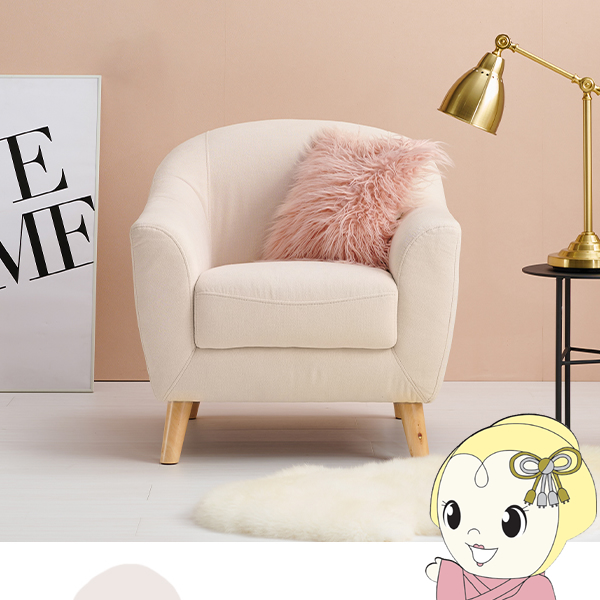 ■ソファ エメル1P 1人掛けソファ ロータイプ ピンクベージュ ワイド座面 シンプル 萩原