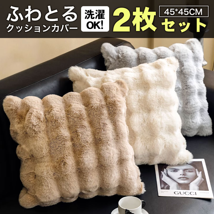 ■クッションカバー フェイクファー 北欧 ふわもこ おしゃれ 可愛い 両面起毛 柔らかい インテリア ソファ 背当て 洗濯可能 45