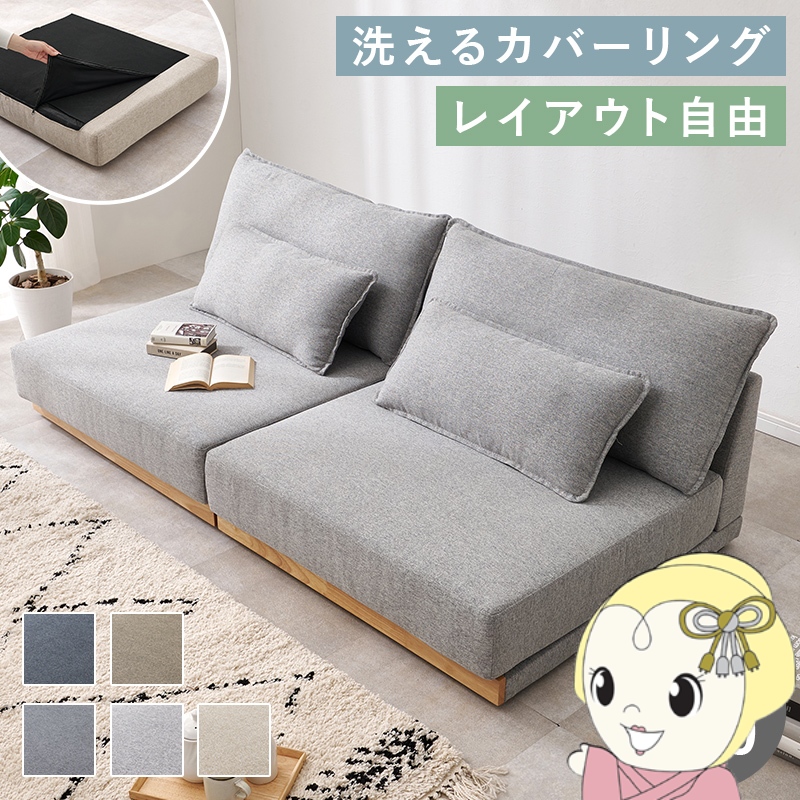 ■ソファ ソファー 3人掛け 幅180 洗える ローソファ フロアソファ 北欧 おしゃれ 木製フレーム シンプル 分割 肘なし クッション付き ライ