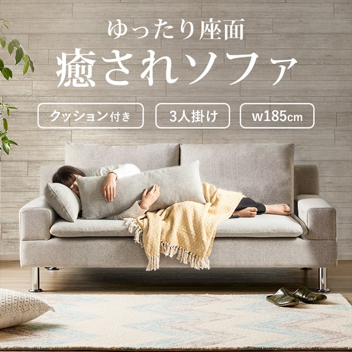 ■ソファー 3人掛け クッション付き 幅185cm 座面 広い 北欧 3人 ソファ 大きめ ワイド 韓国 インテリア おしゃれ グレー 座面ゆったり ソ