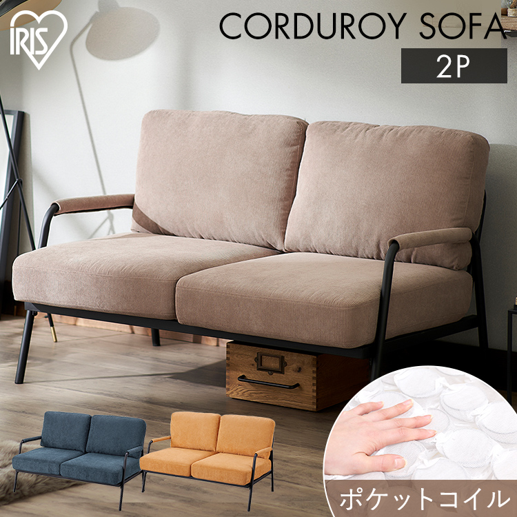 コーデュロイ×アイアンフレームの2人掛けソファです。シンプルでクールなデザイン。座面にはベッドマットレスにも使用されるポケットコイルを採用。フィット感と適度な反発力で快適な座り心地を実現。シンプルなパーツで簡単組立。フレームを組んで、クッションを置けば完成です。コンパクト梱包でお引越しにも便利です。★お客様組立★●商品サイズ(cm)幅約120×奥行約76×高さ約80(座面高さ:約42)●商品重量約17.35kg●耐荷重180kg●主要材質構造部材:金属(鋼)表面加工:エポキシ樹脂塗装張り材:ポリエステルクッション材:ウレタンフォーム、鋼製ばね●必要工具軍手※2人での組み立てをおすすめします