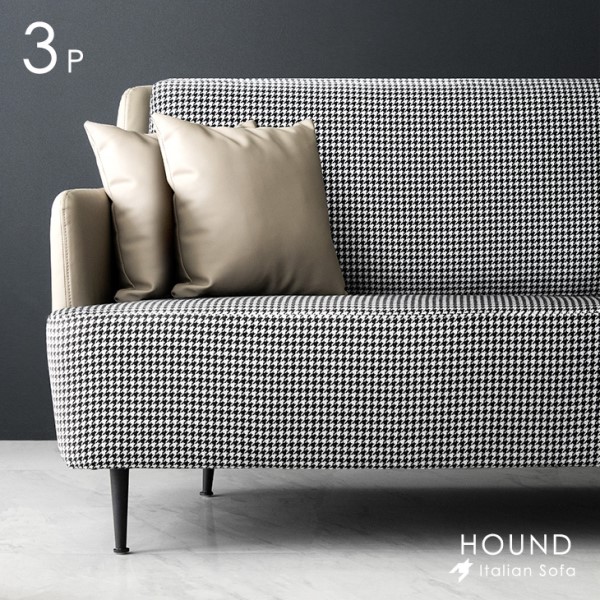 ■ソファ 3人掛け イタリアンモダン 千鳥柄 3P ファブリック & レザー 調 ソファー sofa 3Pソファ 3Pソファー 3人掛 3人 2.5P 2.5人掛け