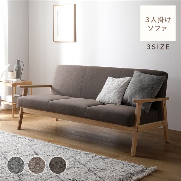 ■ソファ 3人掛け モカブラウン 天然木 木製 木肘 肘付き インテリア家具 リビング家具 茶 送料無料