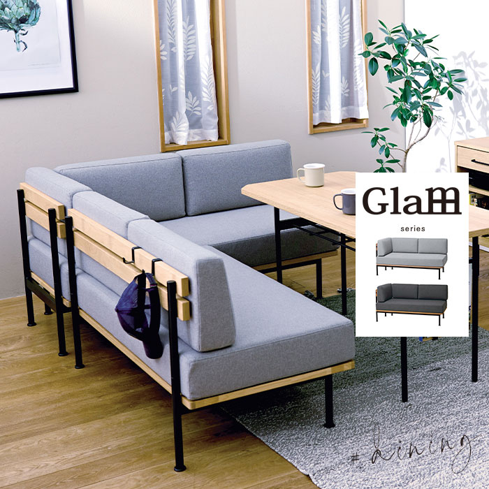 背板に使用したオーク無垢材が映えるアームソファ(右肘)です。ブラックスチールとファブリックの色合いがマッチし、シンプルながらヴィンテージ感漂うおしゃれなデザインとなっています。リビングからダイニングシーンに活躍するソファです。座面はポリエステル100%のファブリックで快適な座り心地です。オプションのフックやマガジンラックをつければ頻繁に使用する小物の保管場所にもなります。