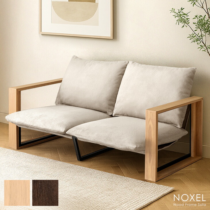 ■天然木 フレーム 圧縮 ソファ 2人掛け 2Pソファ リビングソファ 木製ソファ ソファー 2人 2人掛 肘付き 肘掛 肘あり 布 クッション ファ