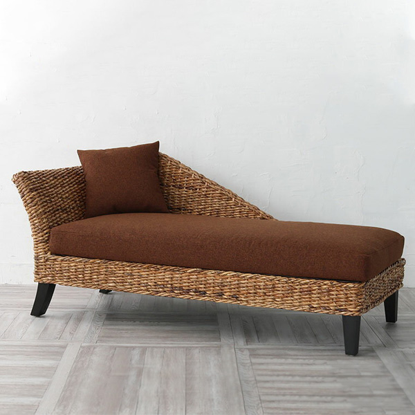 南国情緒あふれるアジアンカウチソファ。南国の天然素材であるバナナリーフとラタンを、インドネシアの職人がひとつひとつ丁寧に編みあげています。くつろぎと癒しのリラックス空間を演出します。存在感のあるデザインなので、インテリアとしてお手軽にアジアンテイストのお部屋をつくれます。40cmの角クッション×1個付属しています。木部の表面をわざと凸凹にするサンドブラスト加工でアンティーク風に仕上げています。バナナリーフは、丈夫でエコロジーな素材です。東南アジアの国では、バナナは生活に密着した必需品として大切にされてきました。食用以外に、葉は冷却効果や抗菌作用があるとされており、食材を包む包装材や食器として、ベッドシーツなどの繊維資材として、または装飾用にと幅広く用いられています。3年程度で収穫でき、実から葉まで無駄なく使える、大変エコロジーな素材です。また、バナナの葉の繊維は太陽光や雨風にも強く、強靭な天然繊維のひとつです。アメ色にいぶしたバナナの葉を乾燥させ、細かく撚(よ)って編みこんだものを家具に使用しています。 外寸:(幅)160×(奥行)70×(高)73(座面高)38 cmインドネシア製