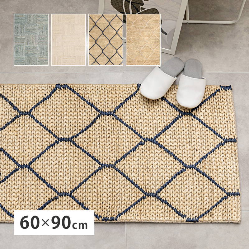 ■ジュートラグ 玄関マット ラグマット 麻 手織り ハンドメイド 長方形 60x90cm おしゃれ トロン・モロッカン