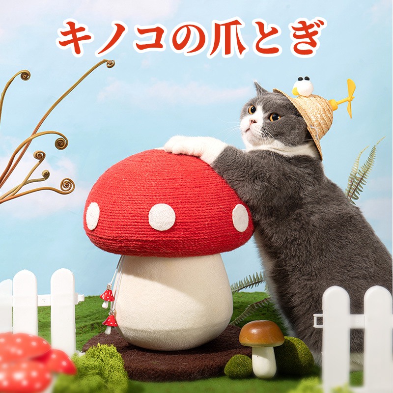 【上質な素材】上質なサイザル麻と柔らかいフランネルが原材料として作られております。猫ちゃんの健康に无害な素材で、猫ちゃんの爪とぎおもちゃとしても、噛むおもちゃとしても安全です。肌触りも優しくて、愛猫を傷つけません。段ボール製の爪とぎと比べて長時間使用できます。【インテリア可愛いキノコ形】爪を研いだり遊んだり、魅力たっぷりのおしゃれな爪とぎ。キノコをモチーフにしたやさしい風合いのデザインで、インテリアとして置いてるだけでも可愛い!色もポップなので、ついつい写真を撮りたくなっちゃう!小型なので、場所をとらず省スペース、窓側、部屋の隅、ソファーの横、ベランダなど気軽に置かれるキャットポール。スペースを取らないのでワンルームの方でも安心できます!【安定した構造】力学原理に基づいたデザイン採用しており、丈夫で揺れにくい、また台座のサイズも従来品より大きくし、猫が突っ張っても倒れる心配はありません。猫が思う存分遊べます。 【組立不要】組み立ては不要♪、すぐに使えて、とても便利です。全体の重さが1.5kg程度だから、お掃除の際も簡単に移動できます。爪とぎカスが出にくく、匂いもありません。