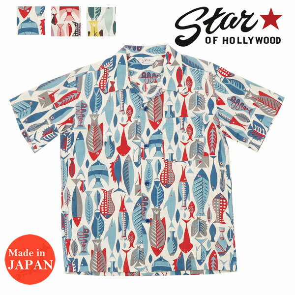 ■STAR OF HOLLYWOOD スターオブハリウッド 半袖 ドビーコットン オープンカラー シャツ FISH アロハシャツ ハワイアンシャツ SH38882