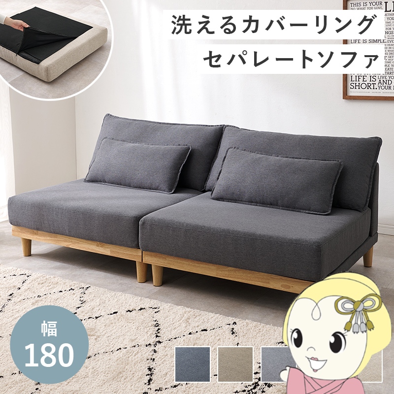 お掃除ロボットが通れる脚付きタイプ。 ロースタイルでお子様やペットにやさしい高さ。 家族全員でゆったりと過ごせます。 分割式なのでレイアウトも自由自在。 サイドテーブルを挟んだり、対面で設置したりできます。 ジョイントテープが付いているので連結時もズレません。 背もたれや座面クッションが取り外せます。 さらにカバーは洗濯可能。 清潔にお使いいただけます。 ■カラー:ダークグレー ■サイズ: 幅180×奥行91×高さ69×座面高36cm 1台あたり:幅90×奥行91×高さ69cm ロータイプ時:幅90×奥行91×高さ59cm ■材質: 本体:天然木 脚部:塩化ビニル樹脂、天然木 生地:ポリエステル クッション材:ウレタンフォーム ■ジョイントテープ付 ■背クッション<大><小>各2ヶ付 ■生産国:中国製 ■組立:お客様組立品 ※お客様組立て品につきましては、組み立て後に不良の連絡をされても対応ができません。組み立て前にパーツに不良・傷等がないか、必ずご確認下さいますようよろしくお願い申し上げます。 ※記載は商品仕様の一部です。仕様説明不足等の理由での返品はできません。特に適合等は