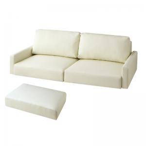 ■Amour(アムール)カウチソファー ベージュ ソファ ソファー 3人掛け カウチソファ 北欧 カバーリング オットマン付き ク