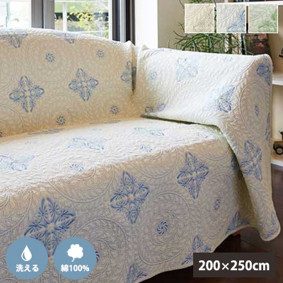 ■送料無料 マルチカバー ソファ キルト 北欧 長方形 綿100% 洗える 刺繍が綺麗なキルト アクワー 200×250cm 約3畳サイズ