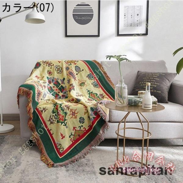■ソファ マルチカバー 北欧 幾何柄 厚手 フリンジ KNK(株) ブランケット 綿 防汚 防塵 1〜3人掛け 長方形 ベッドカバー ラグ カーペット