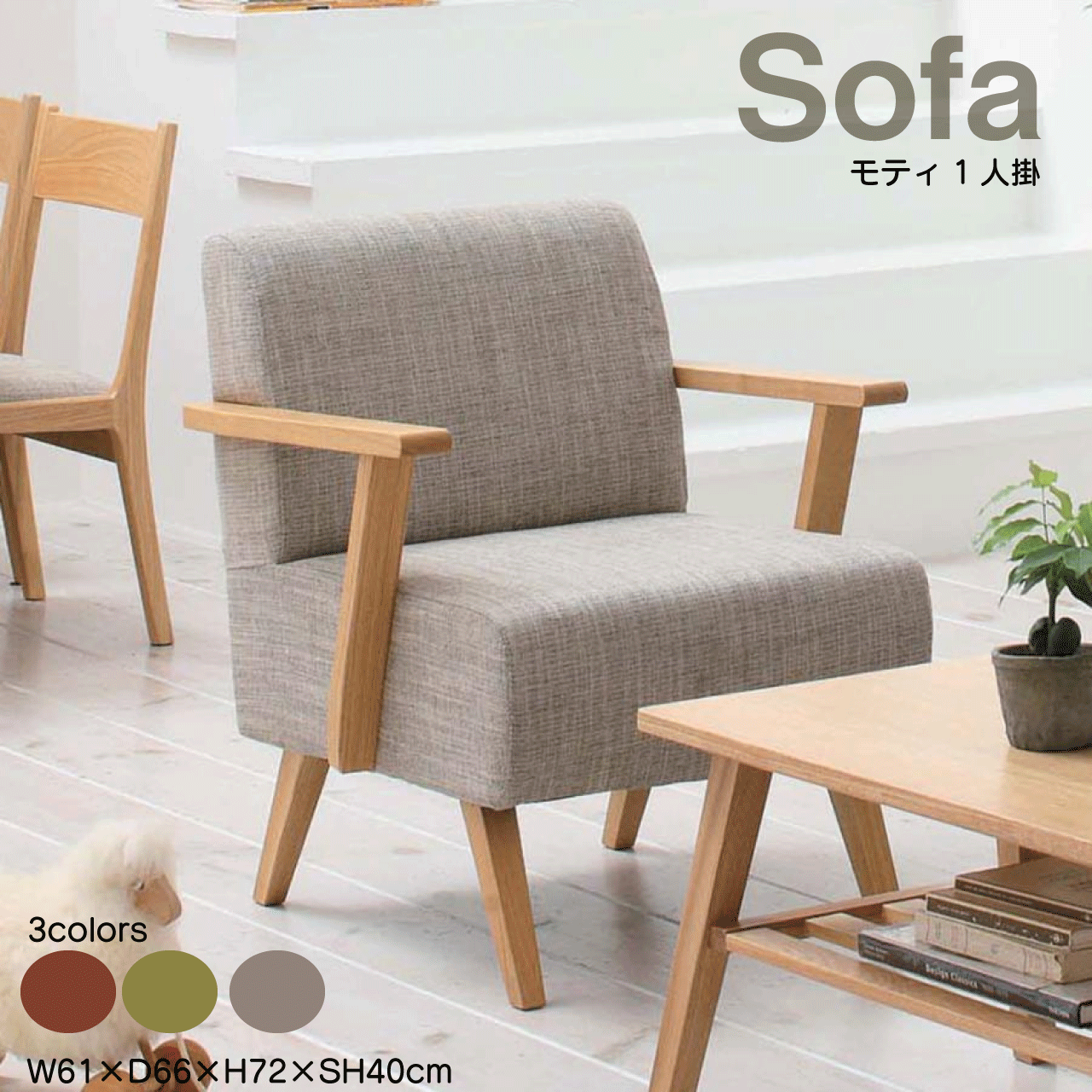 ■モティ 一人掛け ソファ 3カラー ブラウン グリーン ナチュラル W61×D66×H72×SH40cm ソファー おしゃれ 安い 北欧 1人掛け sofa 送料