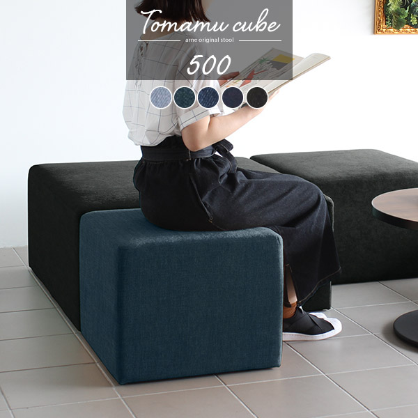 ■ロースツール デニムソファー オットマン スツール 小さい ソファ チェア ミニスツール コンパクト 青 ブルー 黒 北欧 Tomamu Cube 500