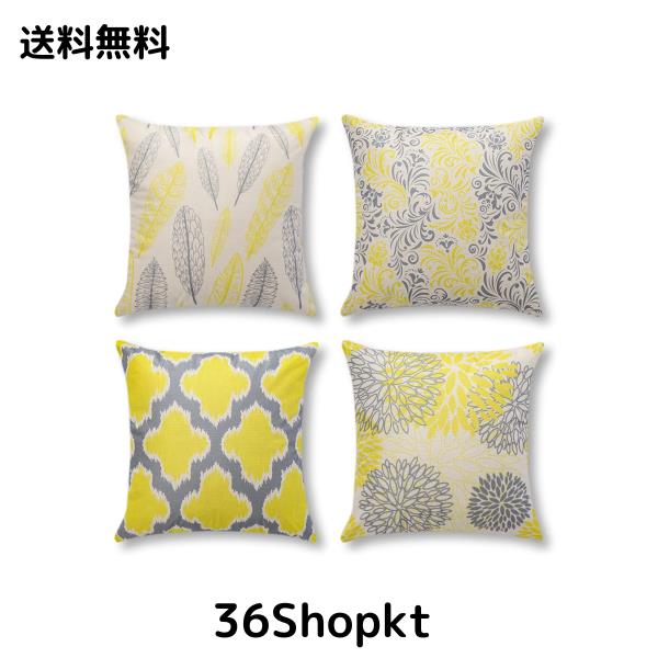 ■OTOSTAR クッションカバー おしゃれ 可愛い 35 35 北欧 亜麻 リネンっぽい 4枚セット 柄 綿とリネン ソファー用クッションカバー ソファ