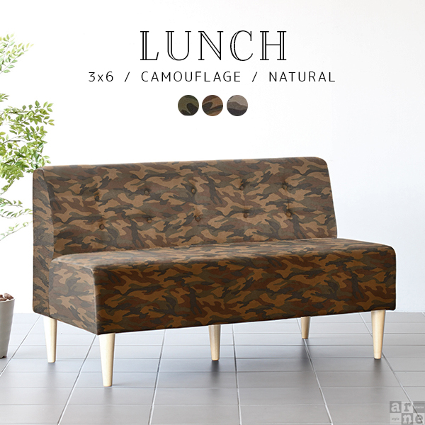 ■ソファ 迷彩 ソファー 2人掛け 二人掛け 2人 アームレス 肘なし カフェ ダイニングソファ 北欧 おしゃれ Lunch 3×6アームレス/脚NA □