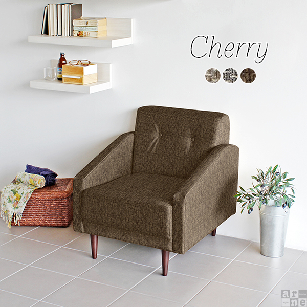 ■ソファ モダン 茶 1人掛け おしゃれ 北欧 ソファー コンパクト アーム付き 脚付き ダイニング兼リビングソファ Cherry 1P □
