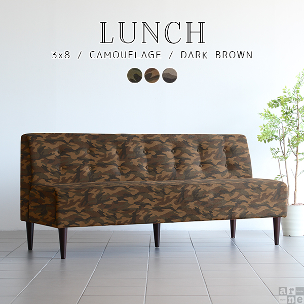 ■ソファ 迷彩 ソファー 3人掛け 4人掛け 北欧 おしゃれ アームレス 肘なし カフェ ダイニングソファ 四人掛け Lunch 3×8アームレス/脚DB