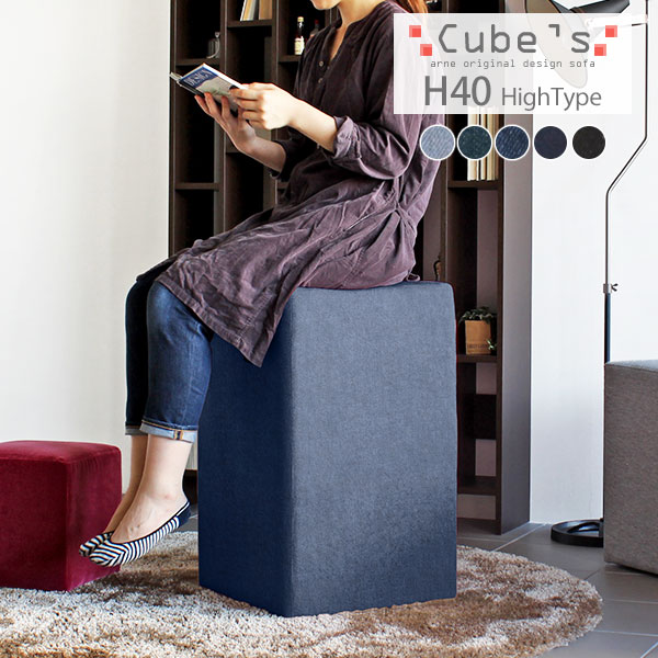 ■ハイスツール デニムソファー スツール チェア バーチェア ソファ 北欧 おしゃれ デニム ブルー 四角 Cube's H40 □