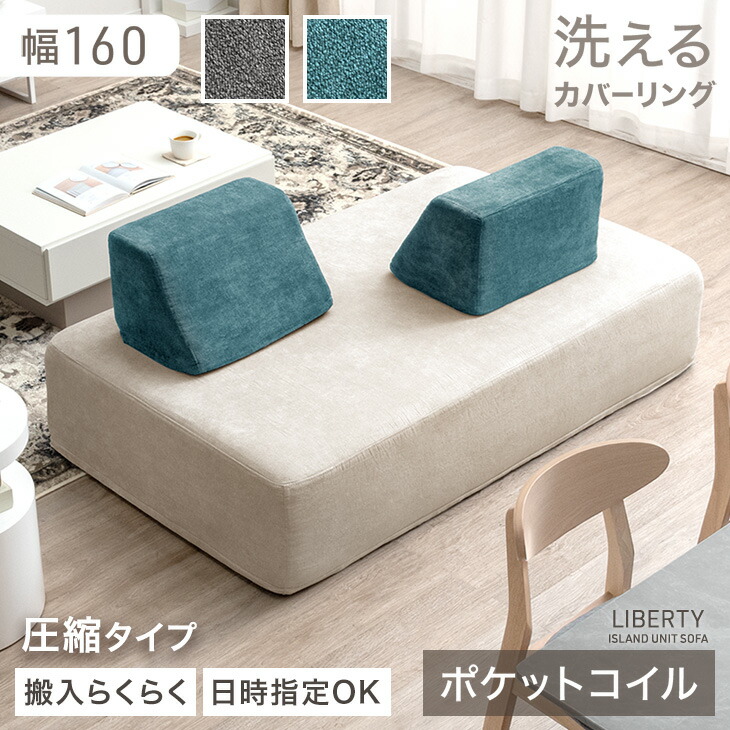 ■【正午〜P5%還元】 アイランドソファ 洗える カバーリング ポケットコイル 幅160 ユニットソファ アイランド ソファ アイランドソファー