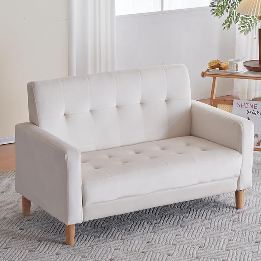 ■オーエスジェイ(OSJ) ソファー 2人掛け 肘付き 天然木脚 幅約110cm 簡単組み立て 2WAY ベルベット おしゃれ 新生活 北欧スタイル ソファ