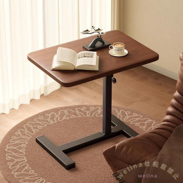 ■昇降式サイドテーブルキャスター付き-高さ66〜106cm調整-回転天板で使いやすいWelinaベッド横/ソファ/玄関に-食事/PC作業に便利-北欧風ス