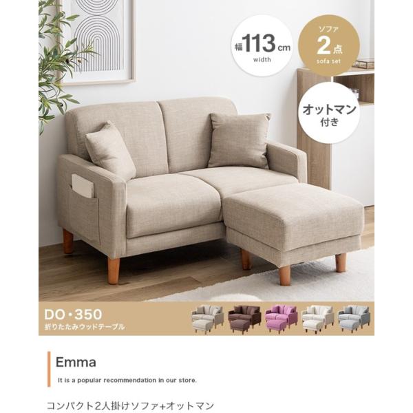 ■ソファ ソファー 2人掛け ふたりがけ 肘付き 2人用 オットマン付き コンパクト おしゃれ 布ファブリック 一人暮らし 2点セット 新生活 Em
