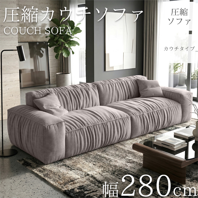 ■圧縮 カウチソファ 290cm 3人掛け スエード 圧縮 ソファ フロアソファ コーナーソファ リビングソファ ソファー カウチ カウチソファー 3