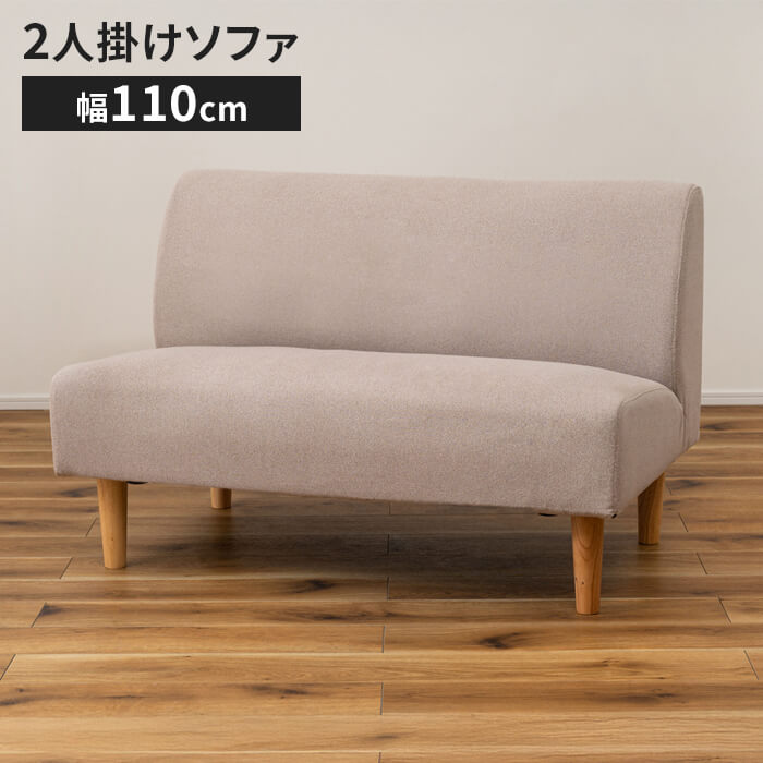 ■【値下げ】ソファ 二人掛け 肘なし 木脚付き ベンチ 幅110 奥行67 高さ72 座面高40cm ダイニングソファ 二人用 おしゃれ 北欧 ファブリッ