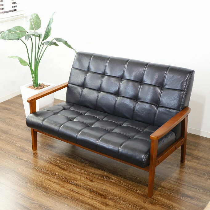 【特長】北欧デザインの木製肘を使用した レトロモダンな2人掛けソファです!コンパクトでおしゃれな レトロ モダンを彷彿させる デザインソファ。天然木 を使った美しい木目 フレームがぬくもりある空間を演出してくれます。狭いお部屋でも圧迫感なく省スペース設計です。【商品名】2人掛けソファ アニータ【サイズ】商品サイズ:幅122×奥行76×高さ77cm座面高:39cm座面奥行:53cm背もたれ高さ:38cm【重量】約18.2kg【材質】・張地/ポリ塩化ビニールシート、綿・芯材/天然木、合板・肘/天然木・座面/Sバネ、ウェービングベルト、ウレタンフォーム・背面/ウレタンフォーム【その他】お客様組立の商品(新品)