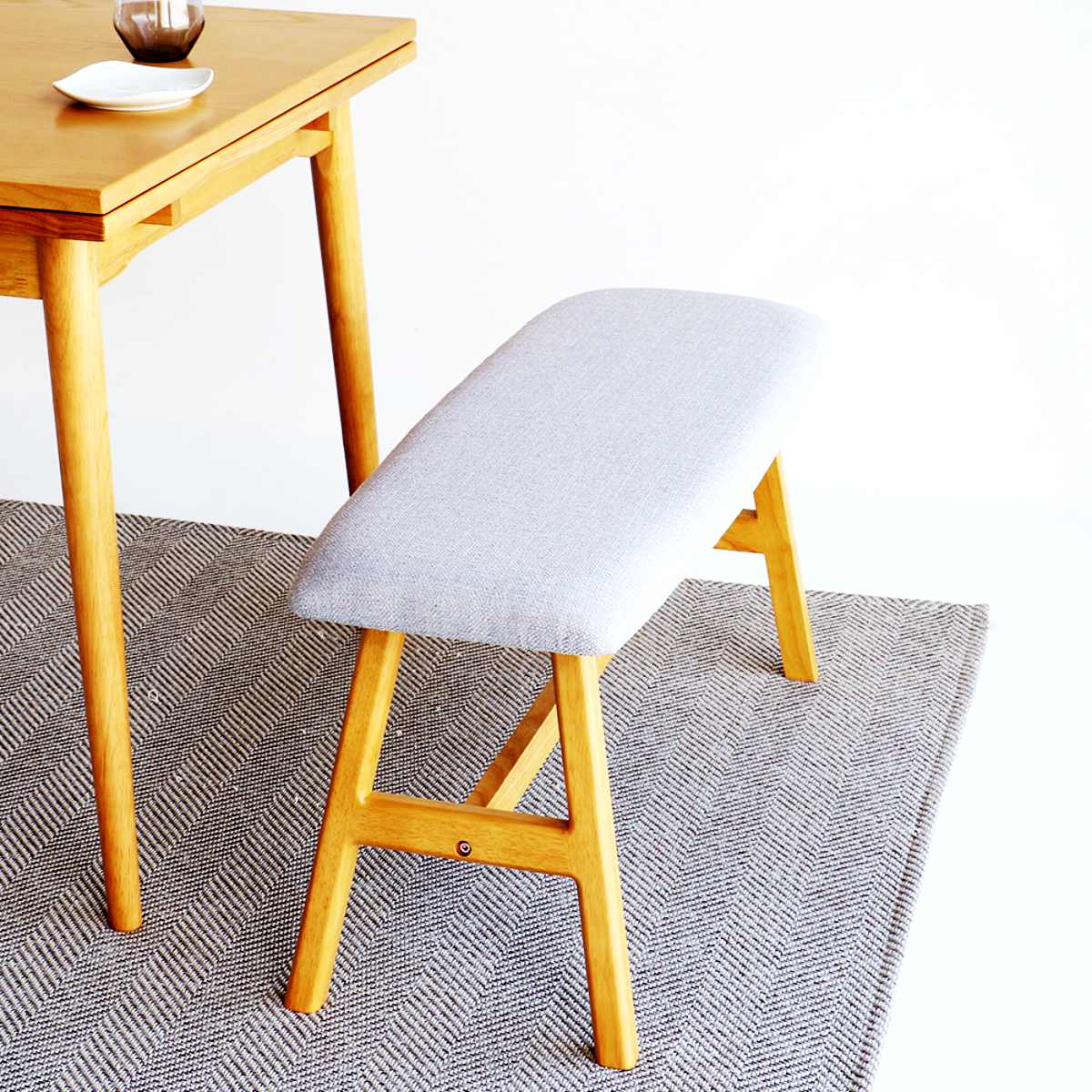 ■ダイニングベンチ 幅90cm E-Toko ( コンパクト ベンチ ダイニング 木製 天然木 ファブリック 布張り 北欧 ダイニングチェア 長椅子 1人