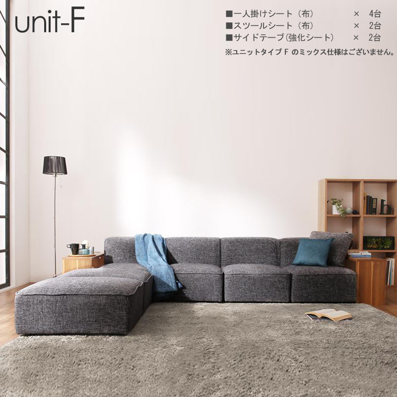 ■UN-Dユニットタイプ F セット ソファセット 色はグレー布張り/キャメルPVCレザー レイアウト自由自在 サイドテーブル付き モダン 北欧