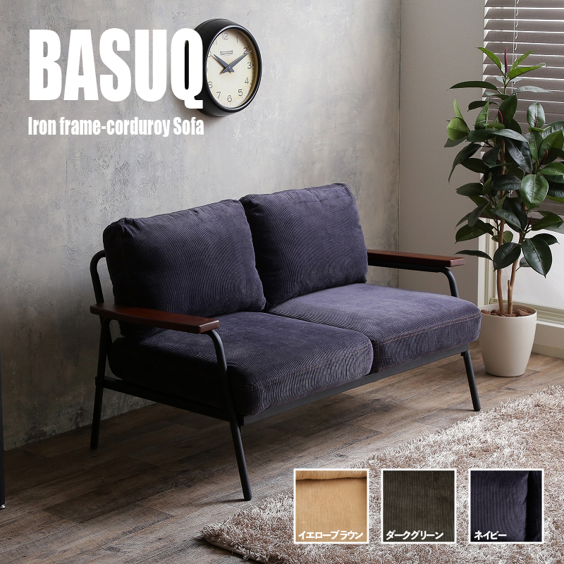 ■BASUQ-2P バスク 二人掛けソファー SOFA コーデュロイ生地 ネイビー色/全3色 幅136cm×奥行約73cm×高さ約80cm 座面高:42cm 北欧 組み