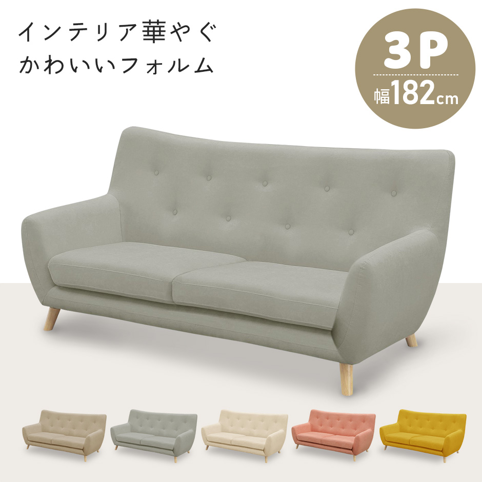 ■配送料について※別途送料対象地域のお客様は別途御見積もりが必要です。対象地域:北海道・沖縄・離島■商品名:ココット3P(ソファ)【cocotte3P】■本体サイズ幅182×奥行85×高さ90×座面高40(cm)■梱包サイズ約幅184×奥行87×高さ70(cm)■材質ファブリックSバネ・ウレタンフォーム・ウェービングベルト■本体重量約41kg■耐荷重240kg■総重量(梱包材含む)約41.5kg■備考※組み立て方や個体差により、サイズ・重量表記と多少の差異が生じる場合がございます。※ご使用のモニターやディスプレイ等の環境によって、実際の明るさや色と多少異なって見える場合がございます。※他商品との同梱は出来かねます。※その他、記載事項ご確認の上ご注文ください。ご予約商品をご購入の場合、au PAYゆったり後払いはご利用になれません。他のお支払方法をご選択ください。