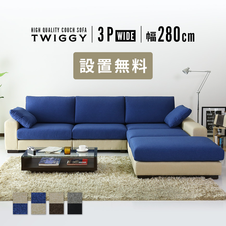 ■開梱設置付き ソファー ソファ 3人掛け カウチソファー L字 ローソファー ツイッギー3Pwide インテリア家具 おすすめ おしゃれ 北欧 big_
