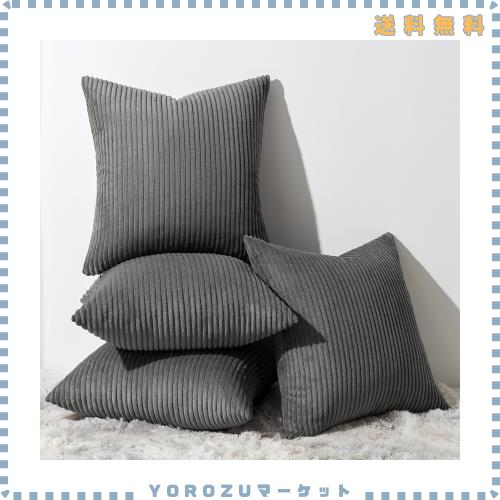 ■Topfinel クッションカバー 45×45cm 4枚セット コーデュロイ 無地 おしゃれ 北欧 洗える ふわふわ 隠れるファスナー ストライプ ソファ
