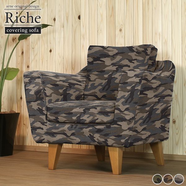 Riche 1P 迷彩生地サイズ:約幅810 奥行き760 高さ800 mm座面高さ:430 mm脚高さ:170 mm材質:[本体]ウレタン、芯材、Sバネ [脚]天然杢[張地]綿100%カラー:カーキ/ブラウン/ベージュブランド:arne日本製/完成品カバー取り外し可/洗濯・クリーニング不可※オーダー品のキャンセル・変更にはお届け前でも生産手配が済んでいるためキャンセル料(商品代金の50%)を頂戴します送料無料※離島は送料別途お見積もり。【ご注意】離島・郡部など一部配送不可地域あり。配送不可地域の場合は通常の配送便での玄関渡し。建物の形態(エレベーターの無い3階以上など)によっては別途追加料金を頂戴する場合あり。吊り上げ作業などが必要な場合についても追加料金はお客様ご負担です。サイズの確認不十分などの理由による返品・返金は不可。ご注文前に商品のサイズ、搬入経路の幅・高さ・戸口サイズ等充分にご確認願います。0000a50615/0000a50616/0000a50617/