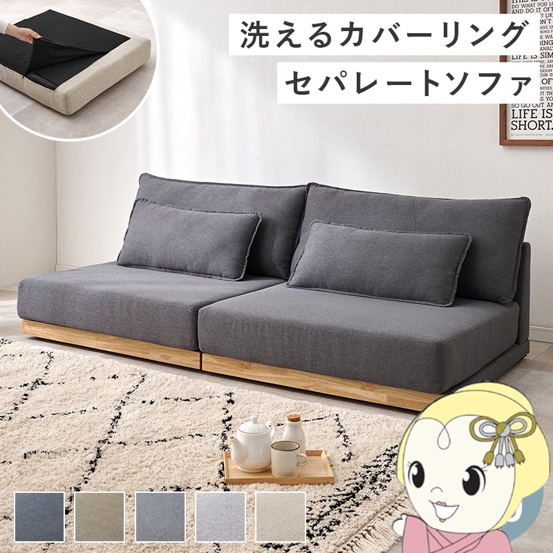 ■ソファ ソファー 3人掛け 幅180 洗える ローソファ フロアソファ 北欧 おしゃれ 木製フレーム シンプル 分割 肘なし クッション付き ダー