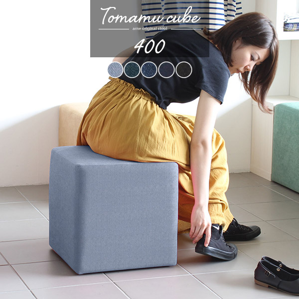 ■ロースツール デニムソファー オットマン スツール 四角 ミニ 小さい ソファ チェア 青 ブルー ネイビー 黒 北欧 国産 Tomamu Cube 400