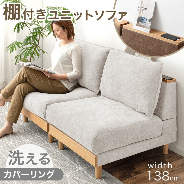 宮付き ユニットソファ 洗える カバーリング 2人掛け ソファ 組み合わせ ウッドフレーム ローソファ ローソファー フロアソファ ロー ソファー sofa 二人掛け 棚付 天然木 木 木製 木枠【商品番号:99900276】