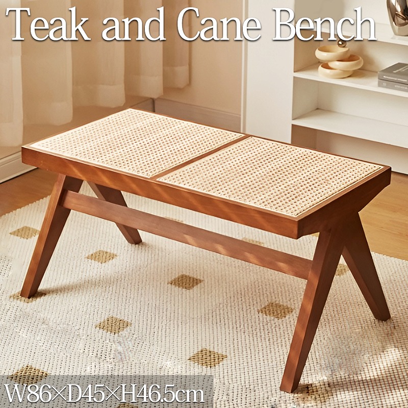 ■ラタンベンチ 籐編み 二人掛け ラタンチェア 北欧 組み立て チークベンチ ジャンヌレ ダイニングベンチ 椅子 ローチェア 木製 椅子 幅86c