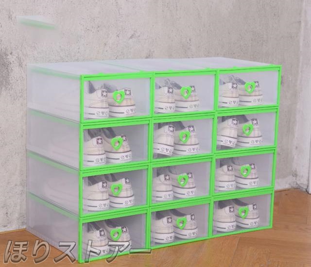 シューズボックス 12個セット 靴収納 ボックス スタッキング収納 折り畳み 前開き 靴棚 下駄箱 玄関 収納棚 靴 スニーカー シューズラック クリアボックス