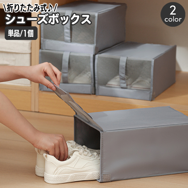 ■シューズボックス 折りたたみ 単品 1個 シューズケース 靴箱 収納ボックス 折り畳み ファスナー メッシュ 収納ケース 下駄箱