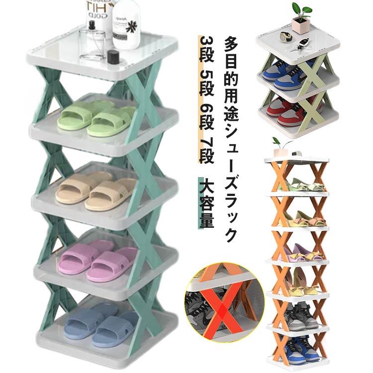 ■シューズラック 3段 5段 組み立て式 折りたたみ 靴箱 下駄箱 靴収納 簡易シューズラック靴棚 スリム 7段大容量 6段 省スペース コンパク