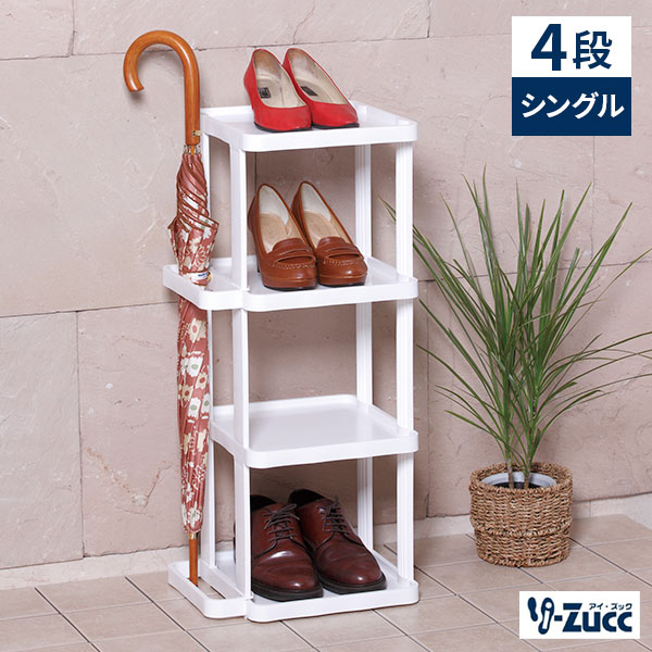 ■靴 i-Zucc シューズラック シングル 4段 ホワイト F-2493 | 収納 玄関 傘立て スリム コンパクト 組立式 プラスチック 下駄箱 省スペー